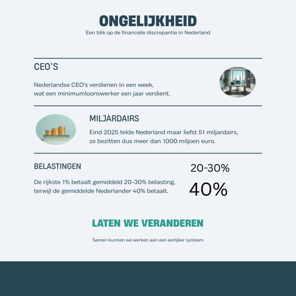 Dit artikel toont de harde realiteit van groeiende ongelijkheid. niet als een abstract probleem, maar als het directe gevolg van belastingsystemen, bedrijfsmodellen en onze eigen keuzes. Het laat zien hoe Nederlandse belastingen degressief zijn (rijken betalen relatief minder dan middeninkomens) en hoe dit bijdraagt aan een economie die opschalen beloont, niet balans. Met de concrete voorbeelden van ondernemers en bedrijven die het anders doen ontdek je dat elke ondernemer, hoe klein ook, een verschil kan maken.